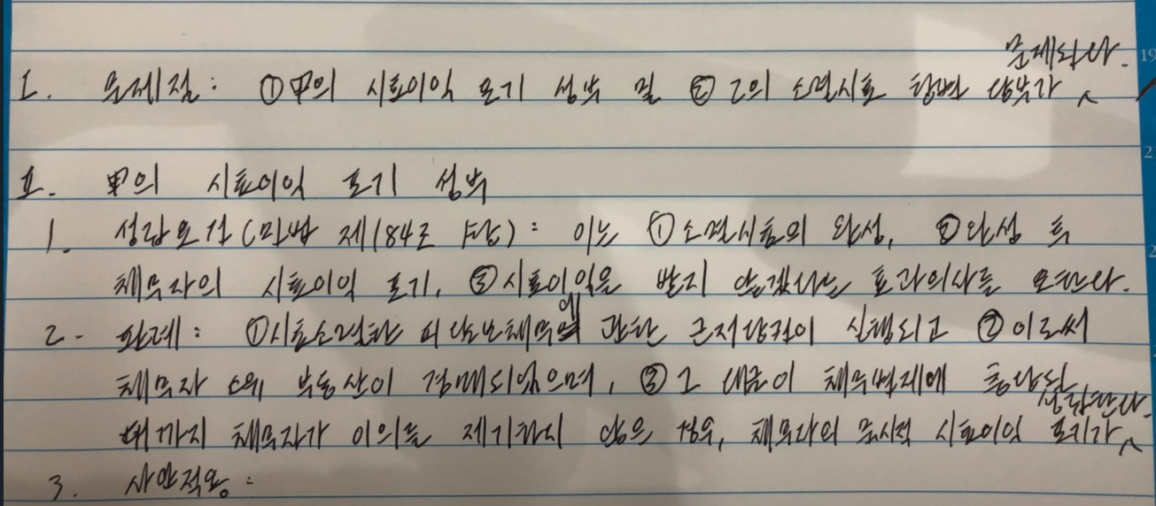 - 처음 공부 시작하면서 답안을 쓰다보면 현실적으로 이렇게 작성하는 것이 어떻게 가능한가 싶은 생각이 들게 됨. 하지만 반복적으로 연습하고 어떻게 하면 답안 내용을 줄이면서 빠르게 쓰면서도 필요한 내용을 다 적어낼 수 있을지에 대한 진지한 고민을 멈추지 않는다면 11, 12월 즈음에는 결국 스스로 맞는 스타일을 찾게 됨.