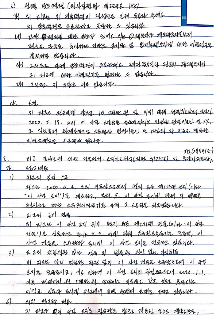 - 위 예제에서는 워낙 오랫만에 써보다보니 까먹고 실수로 누락했는데, 필자는 각 피고마다 1줄의 여백을 두는 경향이 있었음.